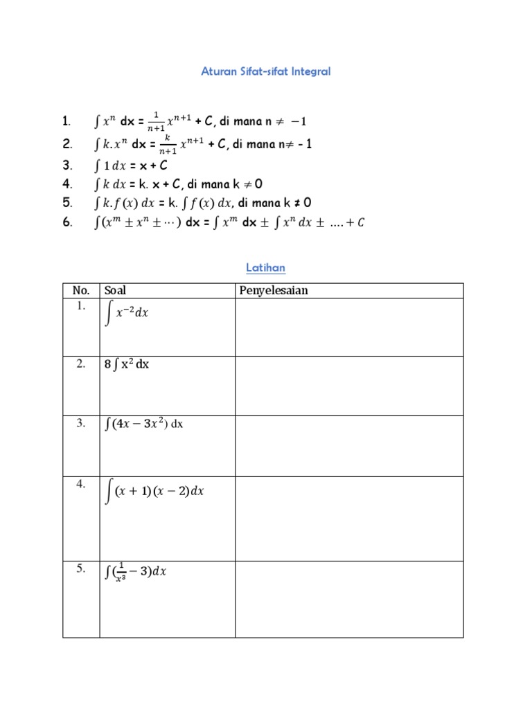 Contoh Soal Integral Tentu Tak Tentu Parsial from rumuspintar.com Dipublikasi pada agustus 29, 2015 oleh ahmadthohir1089. Sistem persamaan linear tiga variabel. Oleh sebab itu, jika gradien garis singgungnya sudah diketahui jadi persamaan kurvanya bisa ditentukan dengan cara berikut. Our calculator allows you to check your solutions to enter the function you want to integrate into the integral calculator. Integral adalah operasi invers (operasi kebalikan) dari diferensial displaystyle \int{f(x)dx} = f(x) + c$.