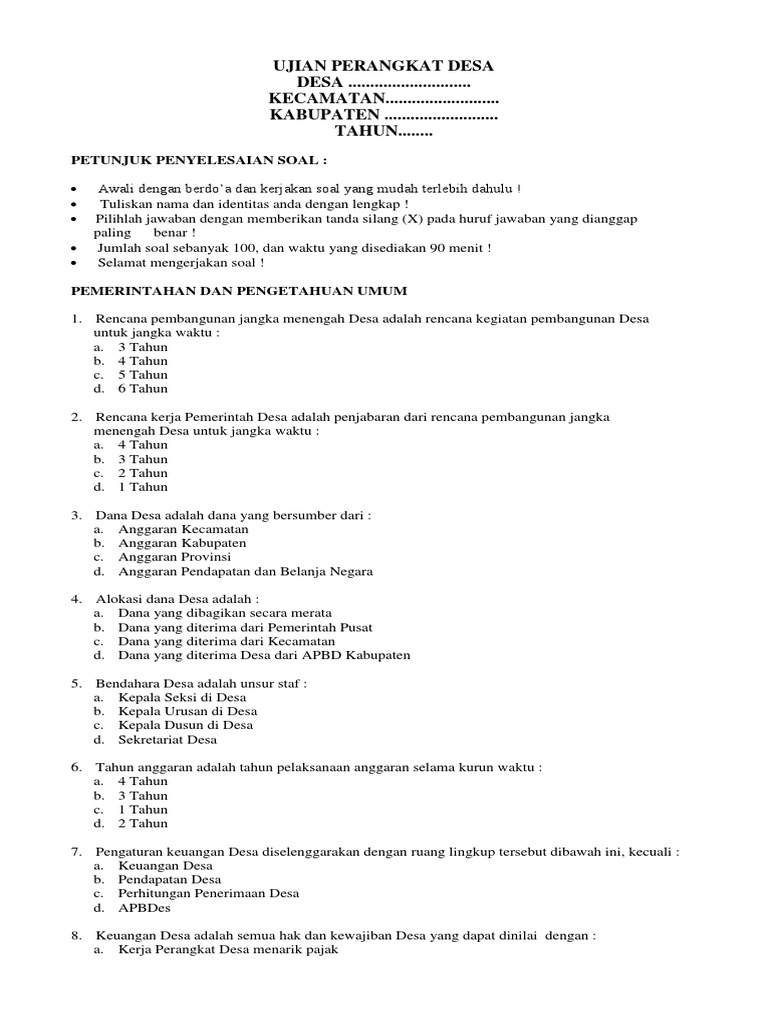 Soal tes ujian perangkat desa 2018 cat beserta jawabannya tes ujian perangkat desa 2018 contoh soal komputer perangkat. Peraturan pemerintah yang mengatur tentang dana desa yang bersumber dari anggaran pendapatan dan. Kata pancasila terdapat di dalam sebuah kitab tulisan pujangga indonesia masa lalu. Format 2.1 formulir kesediaan sekolah madrasah mengikuti akreditasi; Tes komputer perangkat desa terbaru tahun 2020 untuk formasi kaur pemerintahan. Dan bagi masyarakat yang kedepanya mempunyai minat untuk ikut berkecimpung dan berkenginan membangun desanya wajib untuk mempelajari dan memahami isi dari beberapa.
