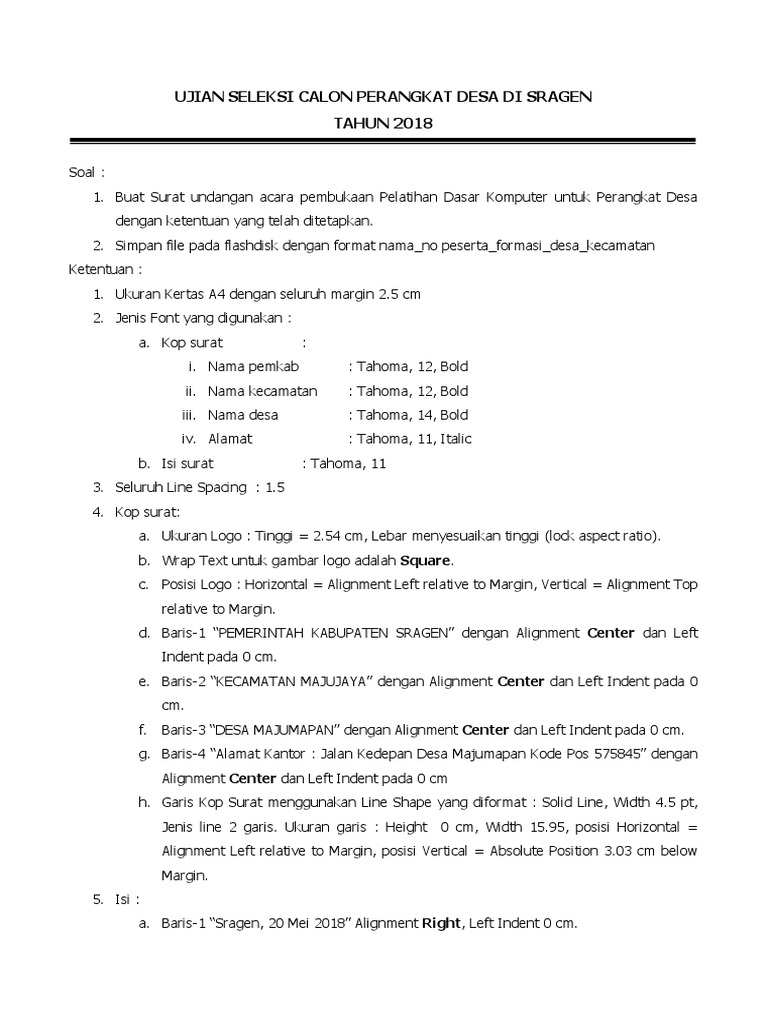 Source: contohsuratlengkap.org (3) peserta tes tulis mengisi jawaban pada. 100%(4)100% found this document useful (4 votes). Ch, seorang peserta ujian perangkat desa di desa candi kecamatan loceret kabupaten nganjuk jawa timur, mendatangi unit reskrim tindak pidana korupsi namun sebelum waktu ujian ia sudah mendengar adanya isu jual beli jabatan perangkat desa di desanya. Soal ujian kompetensi calon perangkat desa lainnya untuk formasi kepala dusun iipanitia pelaksana pengisian perangkat desa peran komputer dalam pengelolaan administrasi adalah a. Kecamatan tolangohula terdiri dari …. Soal ujian praktek komputer perangkat desa. Software (perangkat lunak) merupakan aplikasi yang digunakan agar komputer dapat bekerja sesuai dengan yang dibutuhkan oleh penggunanya. Jenis soal yang dikeluarkan dalam ujian sebagai berikut Komponen komputer ini termasuk dalam kategori elemen perangkat keras (hardware).