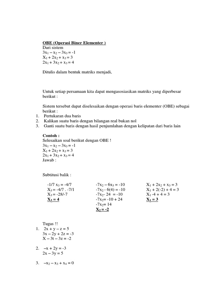 Contoh Soal Matriks Obe. Rangkuman, contoh soal matriks jawaban +pembahasan. #seratusinstitutedotcom #sinotifonlinedotcom #salam100 #mencerdaskanbangsa matriks adalah kumpulan bilangan, simbol, atau ekspresi, berbentuk persegi. Entri dalam matriks juga ditulis dengan format baris koma kolom. Pelajari contoh soal matriks dan kerjakan latihan soalnya. Matriks a dapat dikalikan dengan matriks b jika banyak kolom matriks a sama dengan banyak baris matriks b. Misalnya pada contoh matriks a dan b di atas. Soal yang telah kami rangkum ini sering keluar dalam ulangan ataupun ujian nasional, jadi sangat bermanfaat untuk siswa pelajari. Tingkat soal menguji kemampuan peserta untuk menyelesaikan soal dengan materi matrik tingkat dasar. Contoh soal matriks 1 memuat soal un matriks yang sesuai dengan level kognitif pengetahuan dan pemahaman. Materi kumpulan contoh soal matriks invers, matriks perkalian penjumlahan, dan matriks transpose beserta pembahasan dan jawabannya. Contoh perkalian matriks, pertambahan dan pengurangan matriks, invers matriks, dan determinan matriks. Meliputi operasi sederhana matriks, mengetahui invers matriks dan transpose.