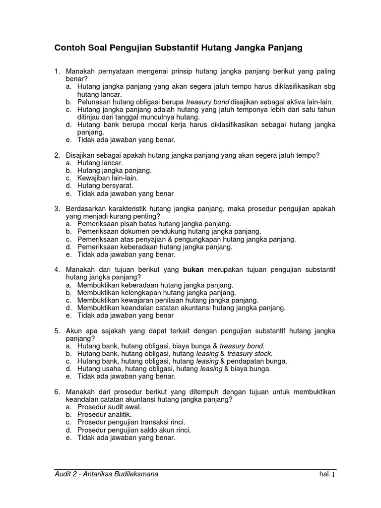 Contoh soal obligasi jangka panjang dan jawabannya menjadi upaya perusahaan untuk melakukan investasi atas kelebihan kas yang dimilikinya da. Home » praktikum audit » contoh soal praktikum audit dan jawabannya. Jika diketahui tinggi kotak pensil tersebut adalah 5cm, berapakah panjang kotak pensil tersebut? Utang jangka panjang (obligasi)— transcript presentasi Jumlah keseluruhannya adalah 90 butir soal pilihan ganda. Kumpulan contoh soal announcement bahasa inggris dan jawabannya.