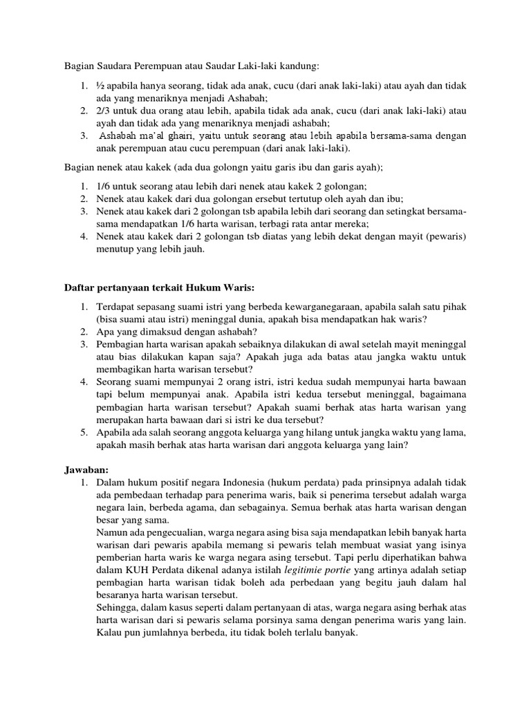 Soal Dan Jawaban Fiqih Tentang Warisan