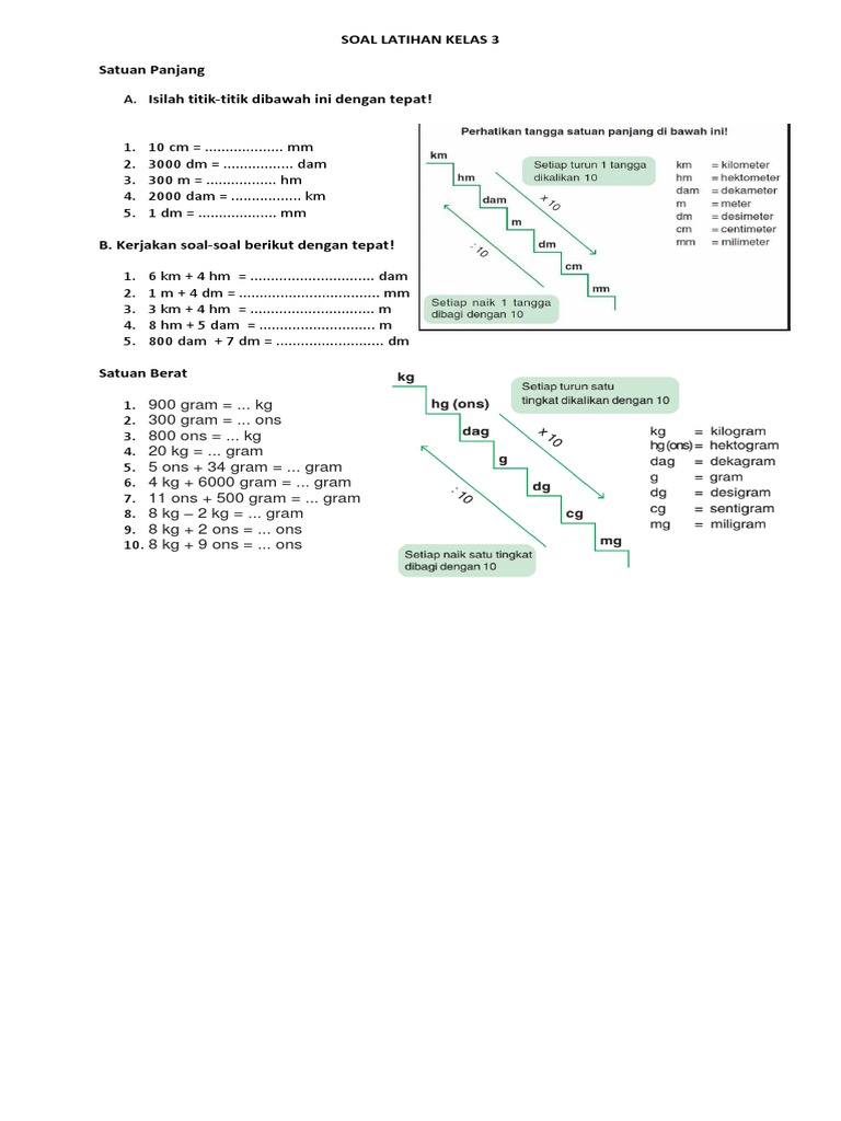 Karena soal ada dua paket, maka kunci jawaban juga dua paket yaitu kunci jawaban soal kelas 6 tema 1 subtema 3 paket a dan kunci jawaban. Contoh soal bahasa indonesia part 2. Soal latihan kelas 3 satuan berat dan panjang. Soal pilihan ganda besaran dan satuan. Urutan satuan panjang adalah kilometer, hektometer, dekameter, meter, desimeter, centimeter, milimeter. Beranda / materi dan contoh soal pelajaran sd. Rumus konversi satuan pengertian materi macam contoh soal.