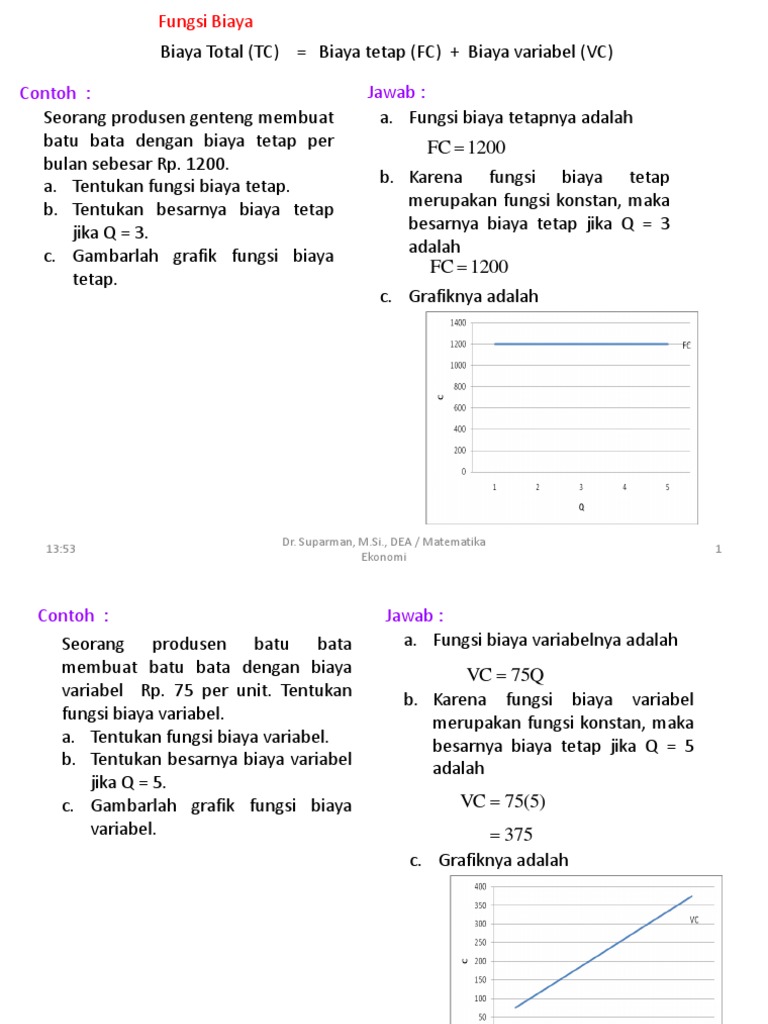 Source: image1.slideserve.com Contoh soal fungsi biaya total matematika ekonomi. Contoh soal metode average beserta penyelesaiannya. Contoh lembaga sosial sudah diatur sedemikian rupa untuk kepentingan masyarakat. Fungsi biaya adalah biaya total (total cost) yang dikeluarkan oleh sebuah perusahaan dalam operasi bisnisnya terdiri atas biaya tetap (fixed cost) dan biaya variabel (variable cost). Biaya tetap (fc) = 10. Fungsi komposisi menggunakan notasi 'o'. Tujuannya pun untuk menciptakan keteraturan hidup antara masyarakat. Fungsi tunggal adalah merupakan fungsi yang bisa dilambangkan dengan huruf f o g atau bisa dibaca f bundaran g. Doc fungsi biaya putri dewi academia edu.