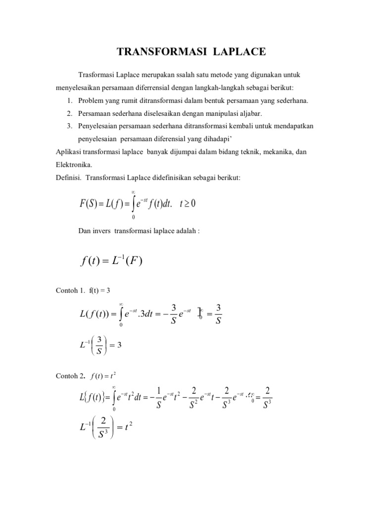 Transformasi Laplace Pdf Document from demo.dokumen.tech Semua persamaan transformasi laplace adalah suatu pernyataan dalam variabel s yang dinotasikan dengan f(s). Hitunglah transformasi laplace dan invers transformasi laplace berikut. Wahyuni ningsih 10 months ago. Pembagian pembilang dengan penyebut menghasilkan: • menyederhanakan persamaan matematis yang mengandung operasi turunan/differensial atau integral menjadi persamaan yang berisi perkalian atau pembagian biasa.