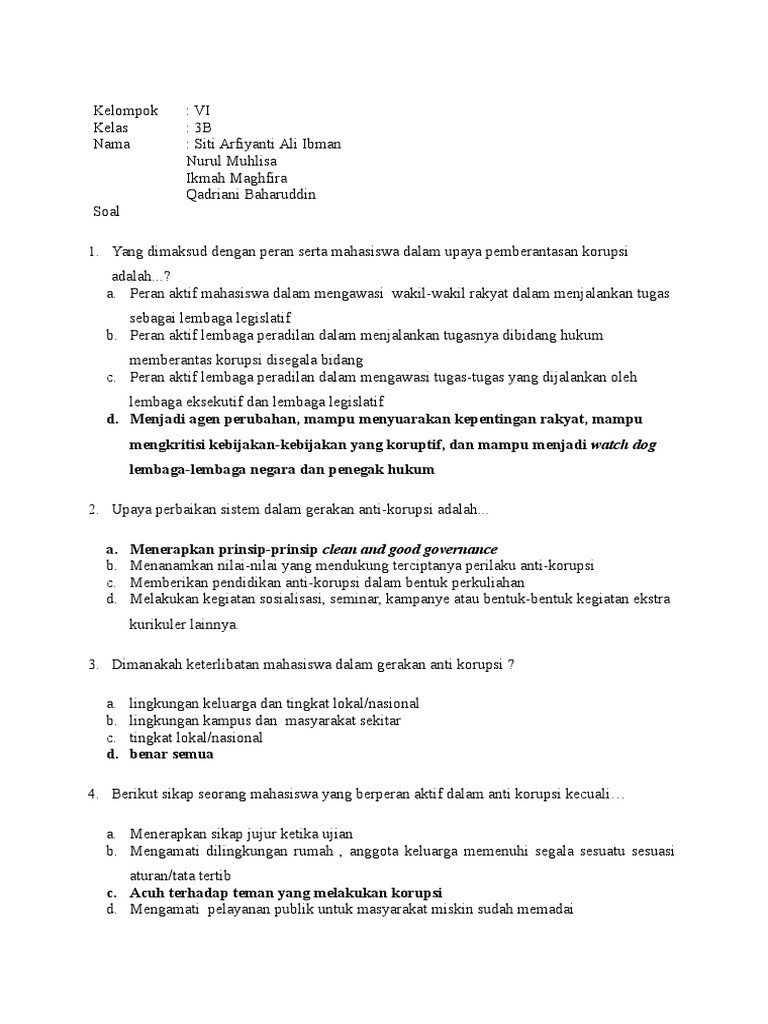 Contoh Soal Pendidikan Anti Korupsi Kelas 10. Soal dan kunci tanggapan memelihara sistem ac. Pendidikan anti korupsi di lembaga pendidikan indonesia sangat penting dilakukan sebab indonesia sudah berada di tepi jurang akibat tradisi kolonial korupsi tersebut. Contoh soal pdto kelas 10 beserta jawaban. .dibangku kelas 10 sma/ma, soal ini sudah admin sediakan sekitar 125 soal dimana soal tersebut bisa adik adik dijadikan sebagai bahan latihan. Mata kuliah pendidikan anti korupsifull description. Bagian pertama pilihan ganda, contoh soal pendidikan agama islam dan budi pekerti kurikulum 2013 (k13) kelas x semester 2 beserta jawabannya, berisikan 10. 50 soal produktif otomotif kelas xii lengkap dengan kunci jawaban. Pendidikan kewarganegaraan kelas 10 atau tingkat sma/smk/ma merupakan sebagai salah satu mata pelajaran yang ada di setiap sekolah negri ataupun swasta. Makalah materi soal pkn kelas 10 sma/ma diterangkan mulai dari sd, smp, atau sma plus min, mts, ma dan smk lengkap dengan jawabannya serta contoh soal pilihan ganda. Sikap yang keliru terhadap malaikat adalah …. Otoritas nasional untuk kependudukan dan keluarga berencana berada di bawah koordinasi menteri. Meyakini keberadaanya sebagai pengawas manusia b.