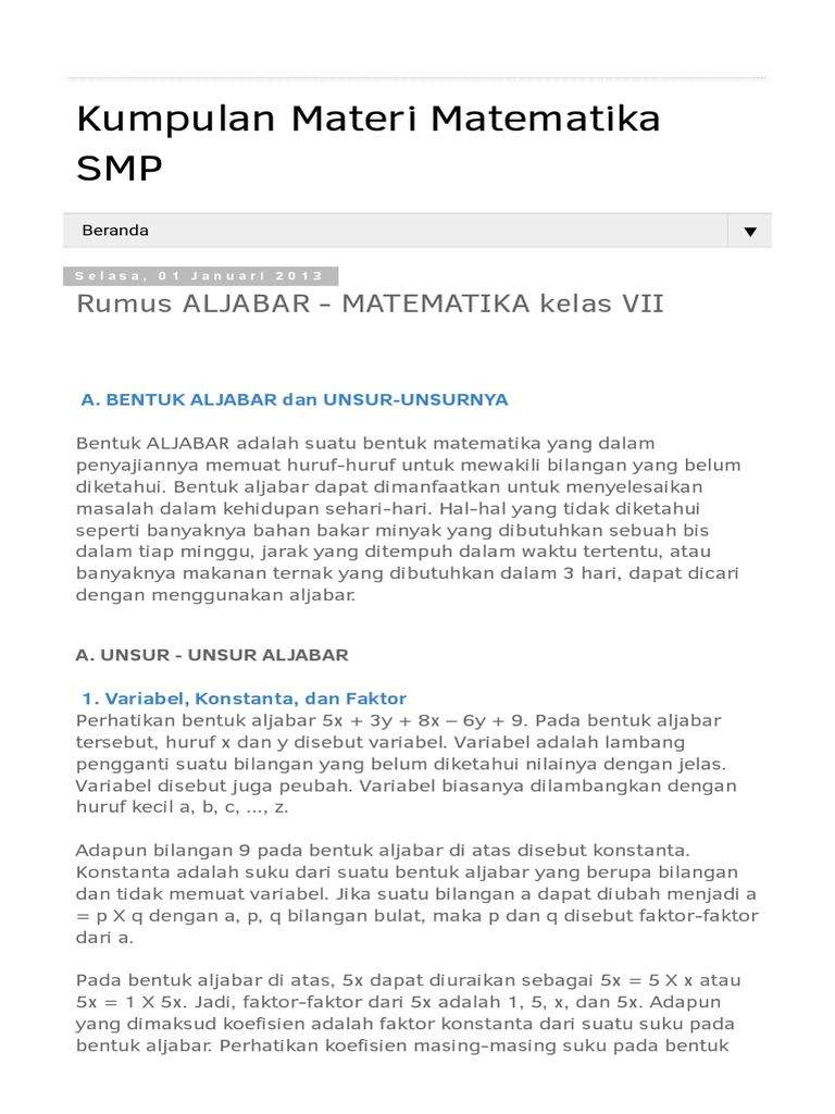 Rumus Aljabar Smp Kelas 9. Kumpulan soal matematika smp kelas 9. Di indonesia sendiri, setiap warga negara yang. Sekolah menengah negeri dan swasta / mts kelas 1,2 hingga 3 mts semester 1 dan 2. Berikut ini diberikan contoh contoh soal tentang aljabar lengkap dengan pembahasannya. Kemudian kami memberkan materi tentang contoh soal agama islam untuk. Artikel ini tentang materi contoh soal agama islam kelas 9 smp/mts (ix), pg dan essay, tahun 2021 pelajaran agama, semester 1 dan 2. Pada bentuk aljabar tersebut, huruf x dan y disebut variabel. Operasi aljabar sesuai kurikulum 2013 semoga bermanfaatdeskripsi lengkap. Documents similar to rumus praktis matematika kelas ix. Pada bentuk aljabar tersebut, huruf x dan y disebut variabel. Rumus matematika smp untuk kelas 7, 8, dan 9 lengkap makalah materi tentang pengertian, tokoh iilmuwan matematika, rumus, dan contoh soalnya. Home » matematika smp » smp » kumpulan rumus matematika smp lengkap kelas 7 8 9.
