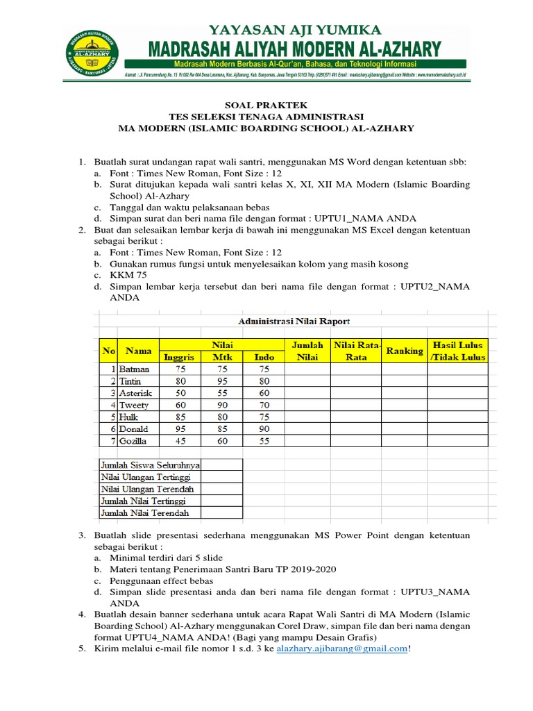 Soal Tes Excel Admin. Soal tes calon pegawai admin. Postingan ini berisi soal tes excel untuk lowongan kerja admin / soal tes excel untuk ujian sekolah. Microsoft excel adalah sebuah program atau aplikasi yang merupakan bagian dari paket instalasi microsoft office, berfungsi untuk mengolah angka menggunakan spreadsheet yang terdiri dari baris dan kolom untuk mengeksekusi perintah. Untuk mendapatkan paket file excel dan juga konsultasi gratis, silahkan hubungi kami:no.wa : This video published since or about 1 year ago ago, hosted by youtube.com and published by channel: Soal bisa di download disini. 20210311 postingan ini berisi soal tes excel untuk lowongan kerja admin soal tes excel untuk ujian sekolah. Susah susah gampang ngisi soal tes kerja admin | baskara tutorialuntuk contoh soal saya dapat dari browsing, tp lupa dmn ya situsnya wkkwkw. Sangkin banyaknya orang yang ingin melamar di bidang admin atau sejenisnya yang berhubungan dengan excel mereka kurang paham akan soal yang tidak perlu khawatir ahome akan memberikan contoh soal walaupun tidak masuk persis di dalam soal tapi langkah langkahnya bisa memudahkan. Dengan adanya fitur fitur yang di berikan 20210312 soal latihan excel untuk pemula guru ilmu sosial download soal tes kerja excel untuk admin lasopalit kumpulan contoh soal contoh. Rumus rumus yang digunakan adalah: Sedang mencari soal soal excel untuk tes kerja karyawan?