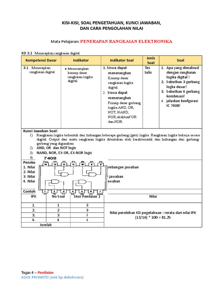 Source: imgv2-2-f.scribdassets.com Soal dan pembahasan gerbang logika dan tabel kebenaran part. Gerbang logika terutama diimplementasikan secara elektronis menggunakan diode atau transistor. Gerbang logika beroperasi berdasarkan sistem bilangan biner yaitu bilangan yang hanya memiliki 2 kode simbol. Pada array 2 dimensi dengan ordo 4x4, diberikan perintah pokok: Soal usbn smk tkj,soal uas tkj, soal uts tkj e. So please help us by uploading 1 new document or like us to download Text of soal gerbang logika. Komponen dalam sebuah komputer yang berfungsi melakukan operasi penjumalahan, pengurangan, dan beberapa logika lain adalah. Pengertian gerbang logika adalah suatu bagian dalam elektronika sebagai pembentuk sistem digital yang melakukan pengolahan input (data masukan) menjadi sinyal output (data keluaran).