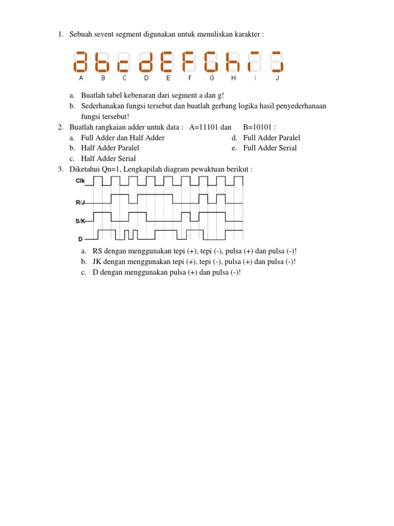 Soal Uas Gerbang Logika . Y = a + (b. Soal pilihan bergandaberilah tanda silang ( x ) pada salah satu huruf a, b, c, atau d pada jawaban yang kamu anggap benar.1. Soal dan pembahasan gerbang logika dan tabel kebenaran part. Pengertian gerbang logika adalah suatu bagian dalam elektronika sebagai pembentuk sistem digital yang melakukan pengolahan input (data masukan) menjadi sinyal output (data keluaran). Suatu gerbang and dengan masukan a dan b diberi masukan grafik logika seperti gambar berikut. Gerbang logika beroperasi berdasarkan sistem bilangan biner yaitu bilangan yang hanya memiliki 2 kode simbol. Gambarlah gerbang logika dari ekspresi berikut ini! Contoh soal gerbang logika 3 variabel. Soal usbn smk tkj,soal uas tkj, soal uts tkj e. Untuk menjawabnya, kamu juga lihat jawaban gerbang logika 3 inputan di atas adalah sebagai berikut (kombinasi gerbang logika and dan or). Contoh soal gerbang logika 3 variabel. Berikut ini webstudi.site akan menyajikan beberapa kumpulan contoh soal gerbang logika lengkap dengan penjelasannya yag kami ambil dari berbagai sumber.