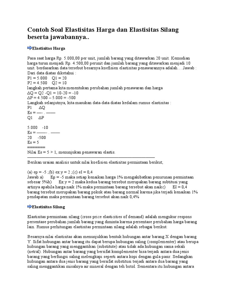 Source: imgv2-2-f.scribdassets.com √ edu passed pass quality & scientific checked by advisor, read our quality control guidelance for more dengan kata lain, perubahan harga tidak disebabkan oleh fluktuasi permintaan. Variasi harga dan jumlah barang yang diminta berupa gula pasir, gula jawa dan gula batu untuk semester i dan ii periode tahun tertentu. Nah itulah artikel badrul mozila kali ini mengenai elastisitas permintaan dan contoh kasus serta cara menghitungnya baik itu pengertian. Variasi harga dan jumlah barang yang diminta berupa gula pasir, gula jawa dan gula batu untuk semester i dan ii periode tahun tertentu berdasarkan laporan penjual eceran sebagai berikut Oleh muchlisin riadi februari 13, 2020 posting komentar. Elastisitas permintaan beserta contohnya 1.pengertian elastisitas secara sederhana elastisitas dapat diartikan sebagai derajat kepekaan suatu gejala ekonomi terhadap perubahan gejala ekonomi lain. Elastisitas permintaan silang (cross price elasticities of demand) adalah mengukur respons persentase perubahan jumlah barang yang diminta contoh: Dalam ilmu ekonomi, elastisitas permintaan atau price elasticity of demand (ped) adalah ukuran perubahan jumlah permintaan barang (jumlah barang akan dibeli oleh pembeli) terhadap perubahan harga barang itu. Pada materi sebelumnya, kita telah belajar tentang teori permintaan dan penawaran beserta pergeseran pada kedua kurva tersebut.