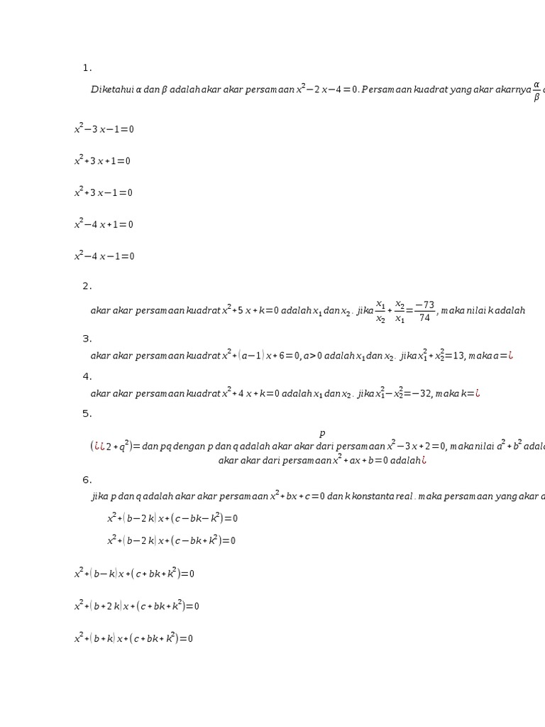 Soal Jika Alfa Dan Beta Adalah Akar-Akar Persamaan Kuadrat